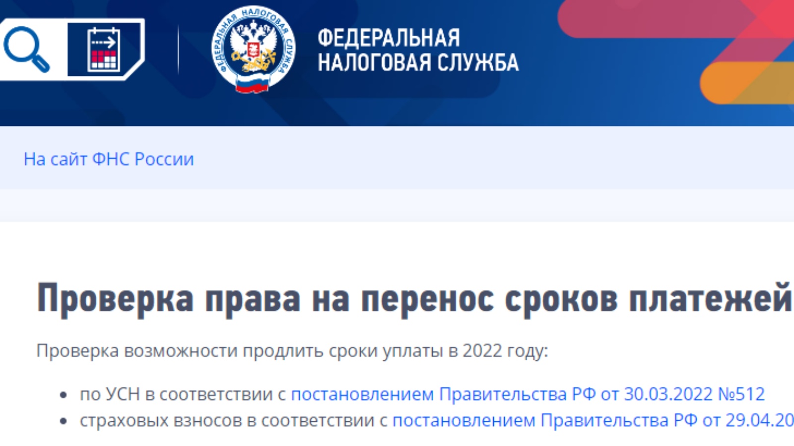Тулырак мәгълүмат белән Федераль салым хезмәтенең рәсми сервисыннан файдаланып, «Сервислар һәм дәүләт хезмәтләре» өстәмә битендә «Ярдәм чаралары» н сайларга һәм алга таба – «УСН һәм иминият взнослары буенча түләү срокларын озайтуга хокукны тикшерү» вкладкасында табарга яки https://service.nalog.ru/mera сылтамасы буенча күчәргә мөмкин.