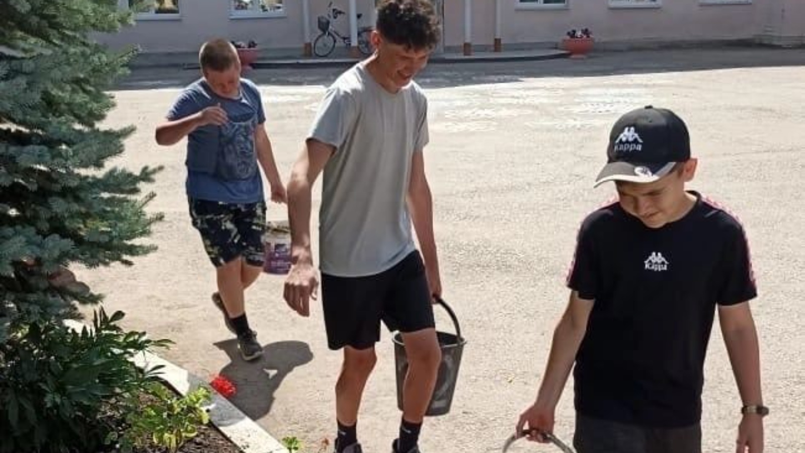Урыссудагы 2 нче мәктәпнең «Пчелка» хезмәт һәм ял лагерында укучылар мәктәп яны участогында бердәм эшлиләр.