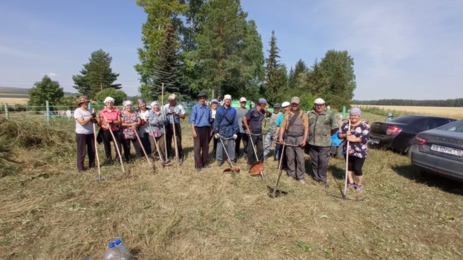 Сәнәк һәм бензопычкылар белән коралланып, ир-егетләр территорияне чистартты. Хатын-кызлар тырма белән чабылган үләнне җыештырды, чүп-чар җыйды.