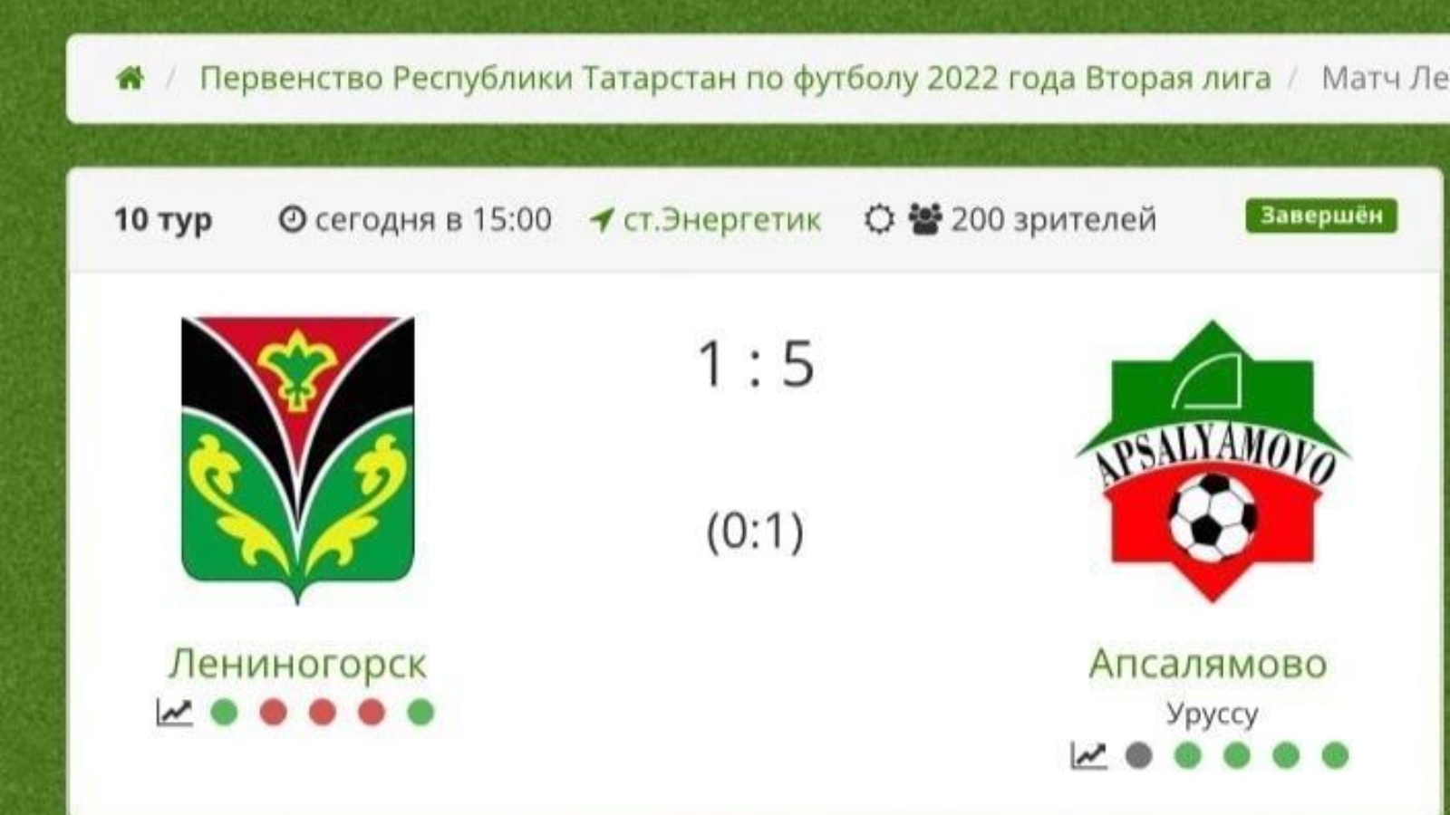 Футбол буенча 2022 ел Икенче лига Татарстан Республикасы беренчелегендә безнең Урыссу поселогының "Апсалямово" командасы Лениногорск командасын 1: 5 исәбе белән җиңде.