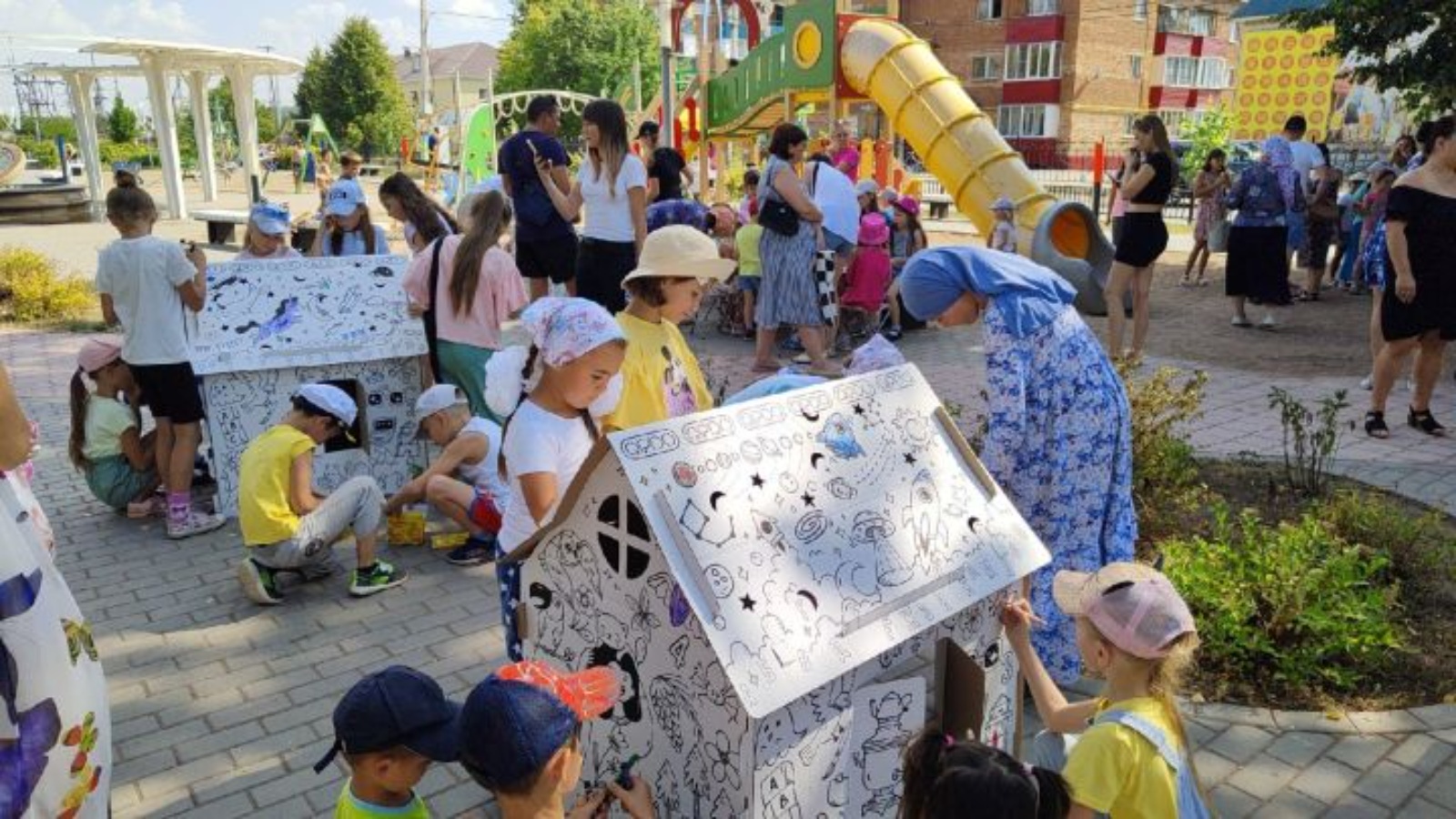 Балалар катыргыдан өйләр җыеп, матур итеп бизәделәр һәм вакытларын күңелле үткәрделәр.