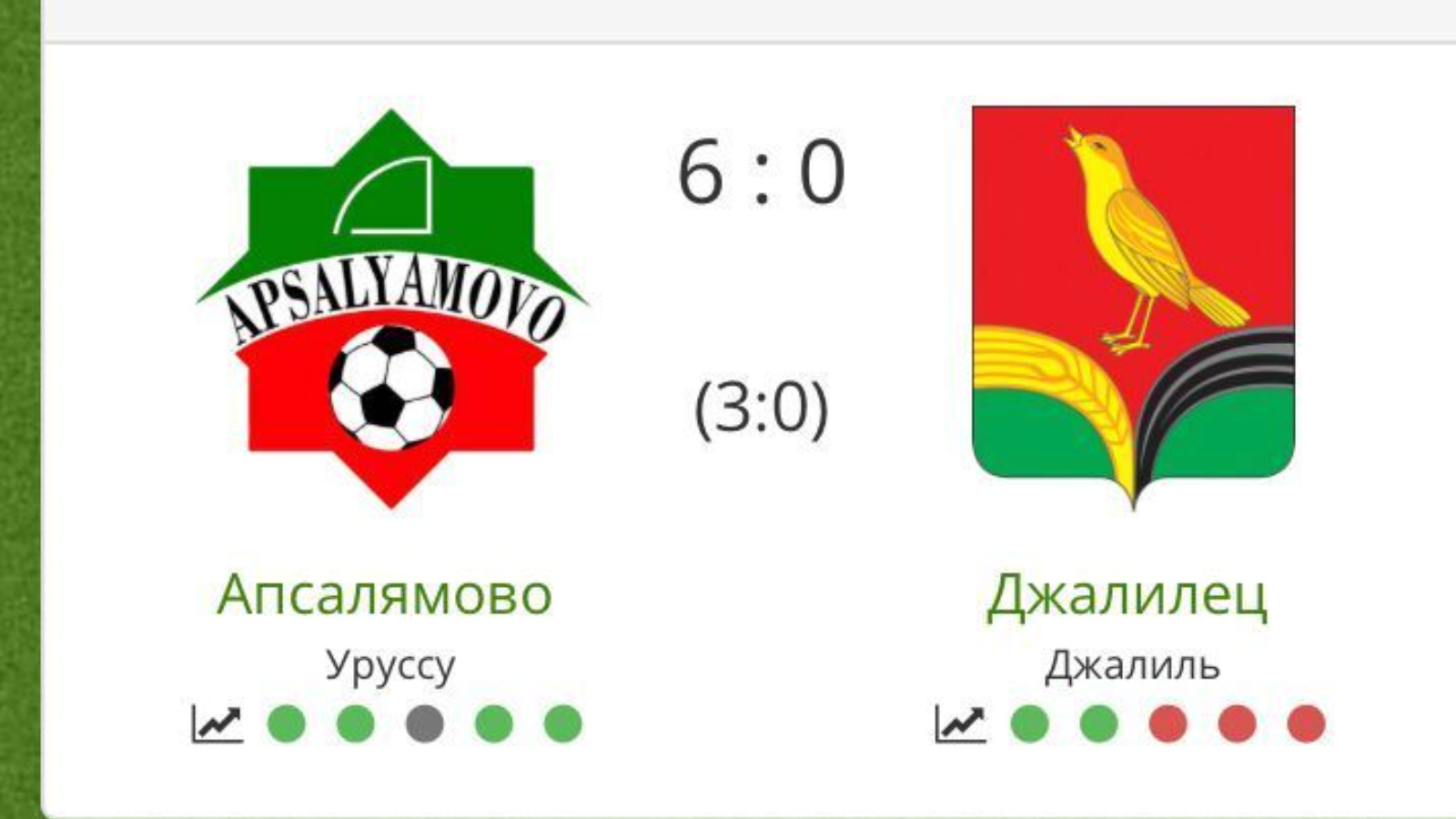 Гомумән алганда, матч Урыссу футболчылары командасының ышанычлы җиңүе белән тәмамланды: безнең көндәшләр безнең капкага бер генә туп та кертә алмыйча, алты гол керттерделәр. Шулай да - 6:0 - ничек горур яңгырый!