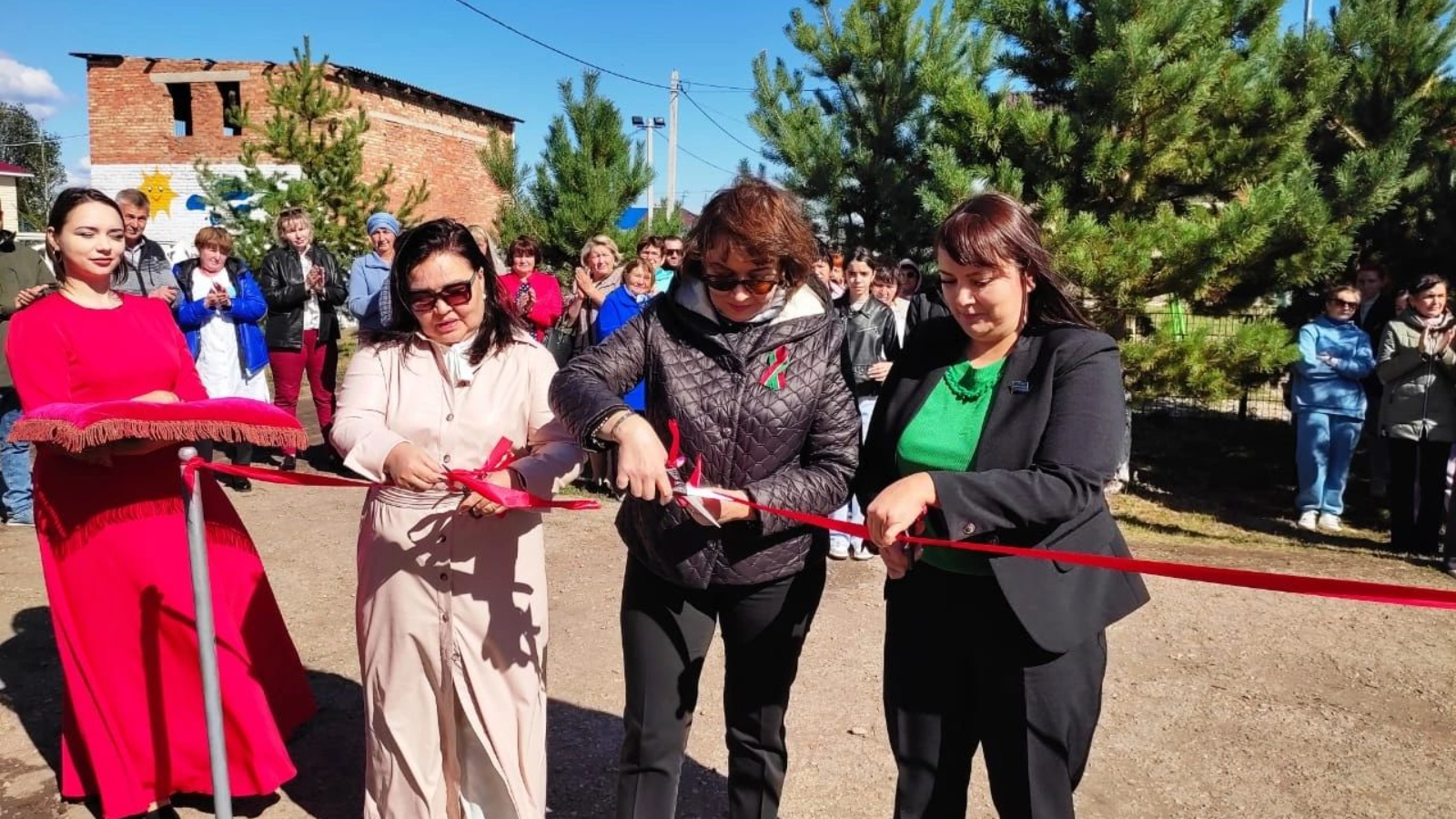 Традиция буенча, тантаналы шартларда, яңа объектка керү ишеге алдында ал тасма киселде. Бу күңелле миссияне муниципалитет вәкиле Светлана Самонина, Урыссу үзәк район хастаханәсенең баш табибы Светлана Шакирова, Әбсәләм авыл җирлеге башлыгы Гөлназ Кубашева башкардылар.
