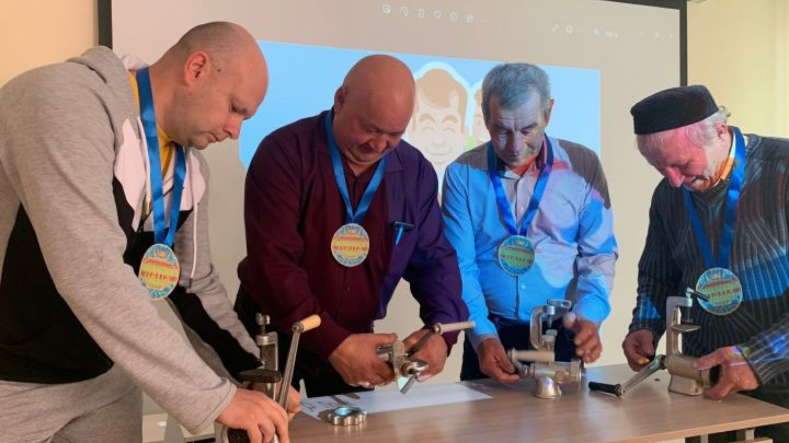 Чарада әтиләр һәм әтиләрнең әтиләре әниләр өчен макароннан муенса ясау, кулдан иттаркыч җыю, бәрәңге чистарту кебек конкурсларда көч сынашты.