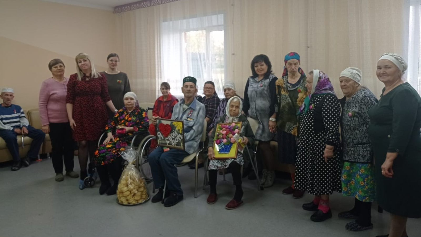 Анда 50дән артык кеше яши. Аларга мастер - класс күрсәттеләр, концерт программасы белән чыгыш ясадылар. Үзләре белән күчтәнәчләр, үз куллары белән ясалган бүләкләр алып килделәр. Бергәләшеп совет чоры җырларын җырладылар, такмакларга биеделәр, бер сүз белән әйткәндә, бәйрәм кәефе тудыралар. Барлык катнашучыларга сәяхәтләре өчен рәхмәт! Сезнең игелекле эшләрегез, йөзгә тапкырланып, үзегезгә кайтсын!