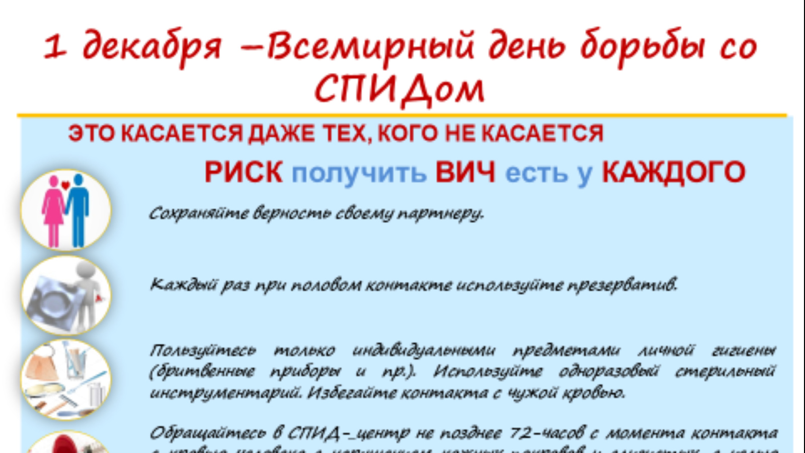 Роспотребнадзорның бердәм консультация үзәге тарафыннан күрсәтелгән чорда 8 800 555 49 43 телефоны буенча ВИЧ-инфекция проблемасы буенча «кайнар линия» оештырылачак.