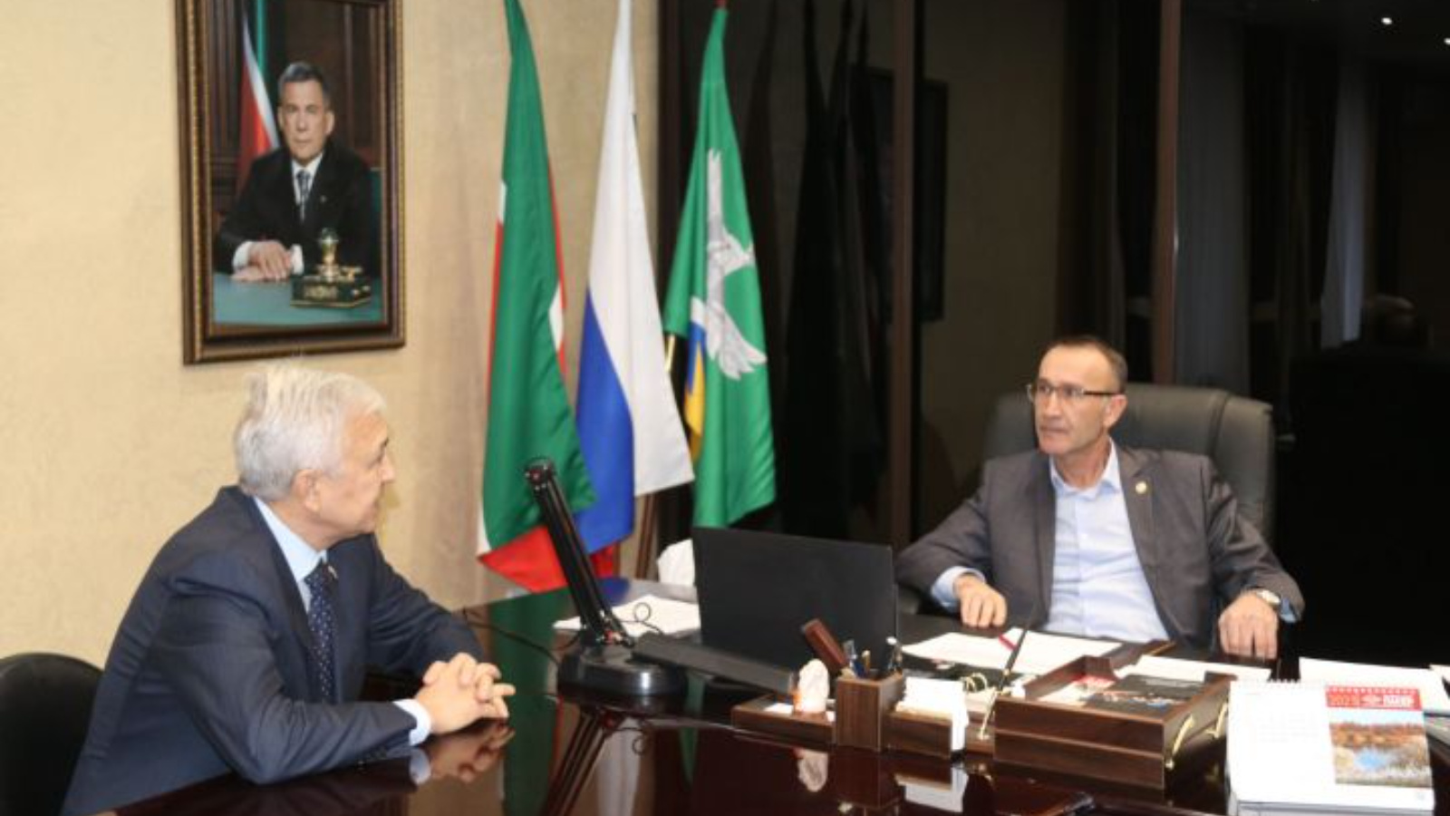 VIII чакырылыш Россия Федерациясе Дәүләт Думасы депутаты Азат Ягәфәров район башлыгы Аяз Шәфигуллин белән аның бүлмәсендә очрашты.
