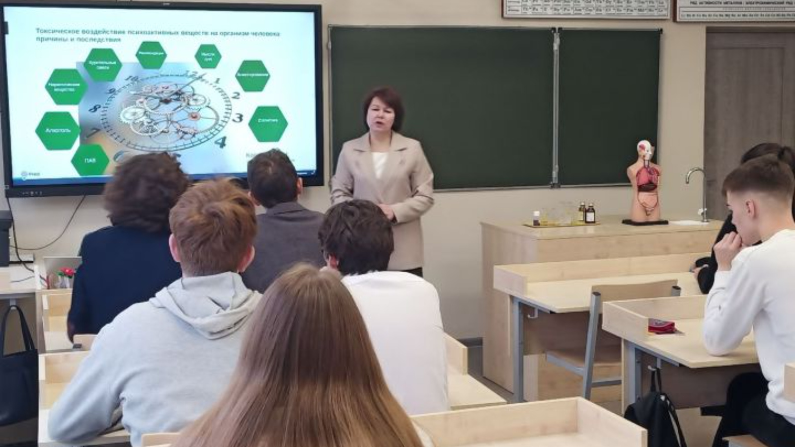 Урыссуның 3 нче урта гомуми белем бирү мәктәбенең химия һәм биология укытучысы наркотиклар, психотроп һәм башка психоактив матдәләр куллануны профилактикалау буенча методик эшләнмәләр республика конкурсында җиңүче булды.