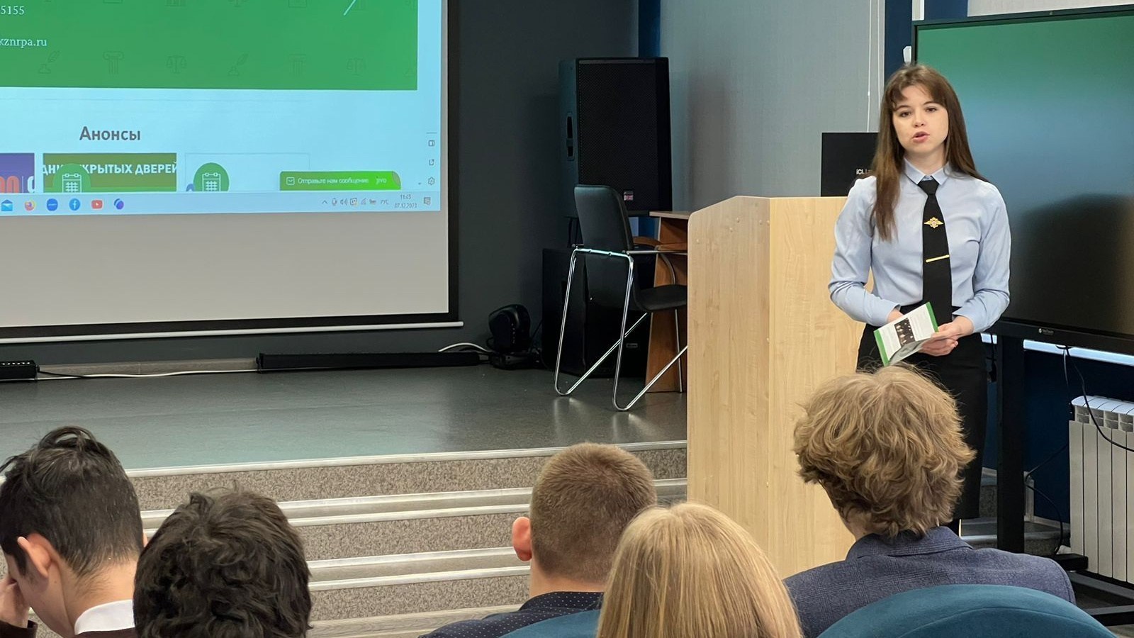 «Бөтенроссия дәүләт юстиция университеты» ФДБББУ Казан институтының (филиалы) 3 курс студенты Софья Курагина Урыссуның 3 нче урта гомуми белем бирү мәктәбенең булачак чыгарылышчылары белән һөнәри юнәлеш бирүче әңгәмә үткәрде.