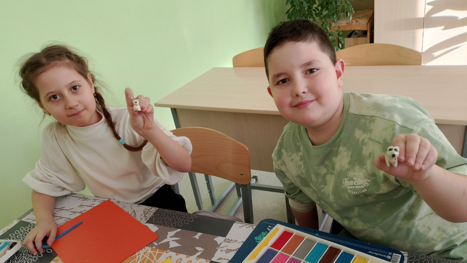 Урыссуның беренче санлы мәктәбе базасындагы «Тылсымлы әвәләү» берләшмәсендә укучылар төрле темаларга сыннар ясарга өйрәнәләр.