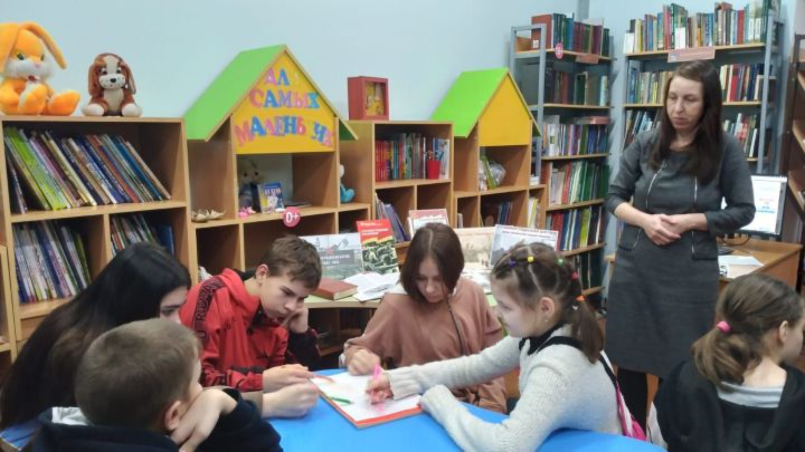 Китапханәче Заһретдинова Кадрия балаларга Бөек сугыш турында, сугыш елларында өлкәннәр белән бергә фронтларда һәм дошман тылында балаларның ничек көрәшүе турында күп тарихи фактлар сөйләде.