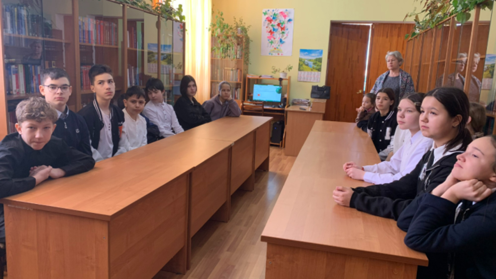 Бу көнне Үзәк китапханәдә Урыссуның 2 нче санлы мәктәбенең 7 нче сыйныф укучылары өчен «Махсус хәрби операция — иреккә һәм тынычлыкка юл» дигән патриотик сәгать үткәрелде, анда балалар махсус билгеләнештәге беренче бүлекчәләрне булдыру өчен нәрсә этәргеч булганы турында белделәр.