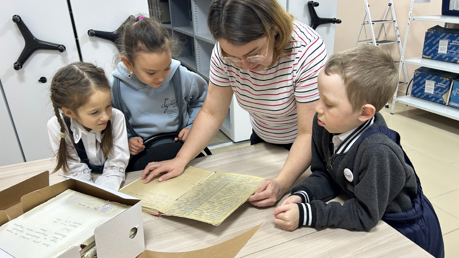 Укучылар кызыксынып шәхси состав документларыннан үзләренең әби-бабайларының эшләгән еллары турындагы документларны күзәттеләр, сугыш чоры газеталарын карадылар.