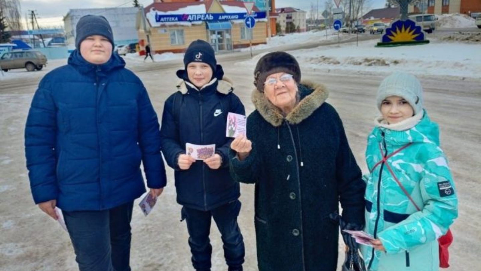 Балалар Урыссу бистәсенең гүзәл затларын якынлашып килүче 8 март бәйрәме белән котладылар, котлау открыткалары тапшырдылар.
