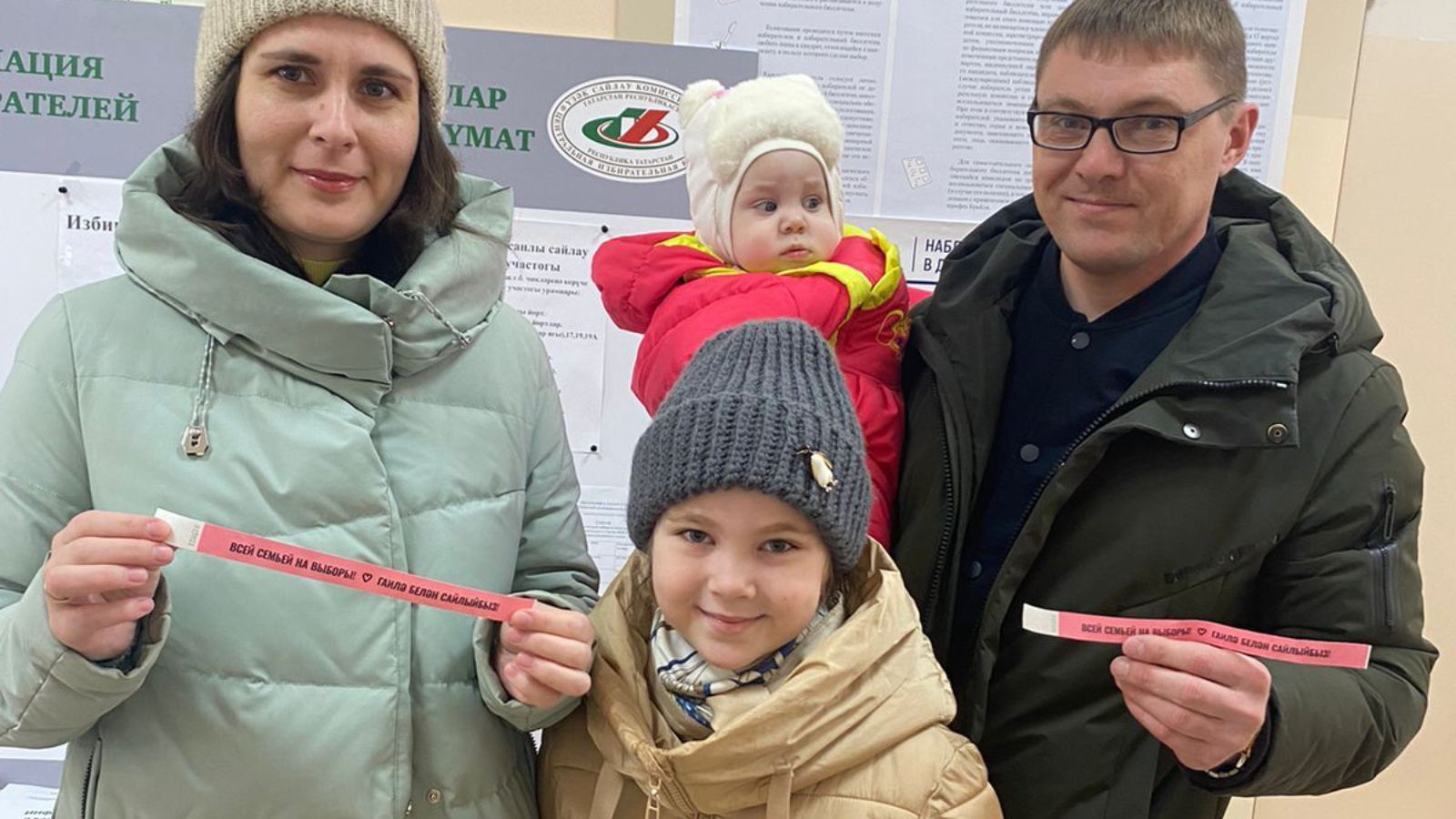 Балалары, туганнары һәм якыннары белән яхшы кәеф белән ютазылылар сайлау участокларына илнең киләчәге һәм тотрыклы үсеше өчен тавыш бирергә киләләр.