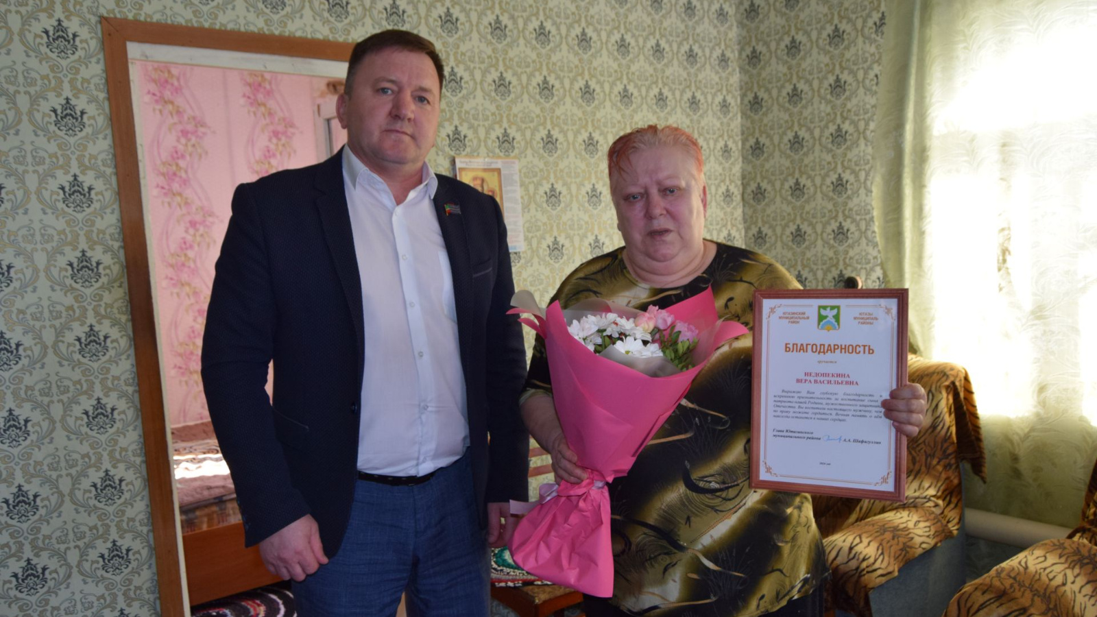 Ютазы районы башлыгы урынбасары Закуан Ильясов махсус хәрби операциядә катнашучыларның әти-әниләренә рәхмәт хатлары тапшырды.