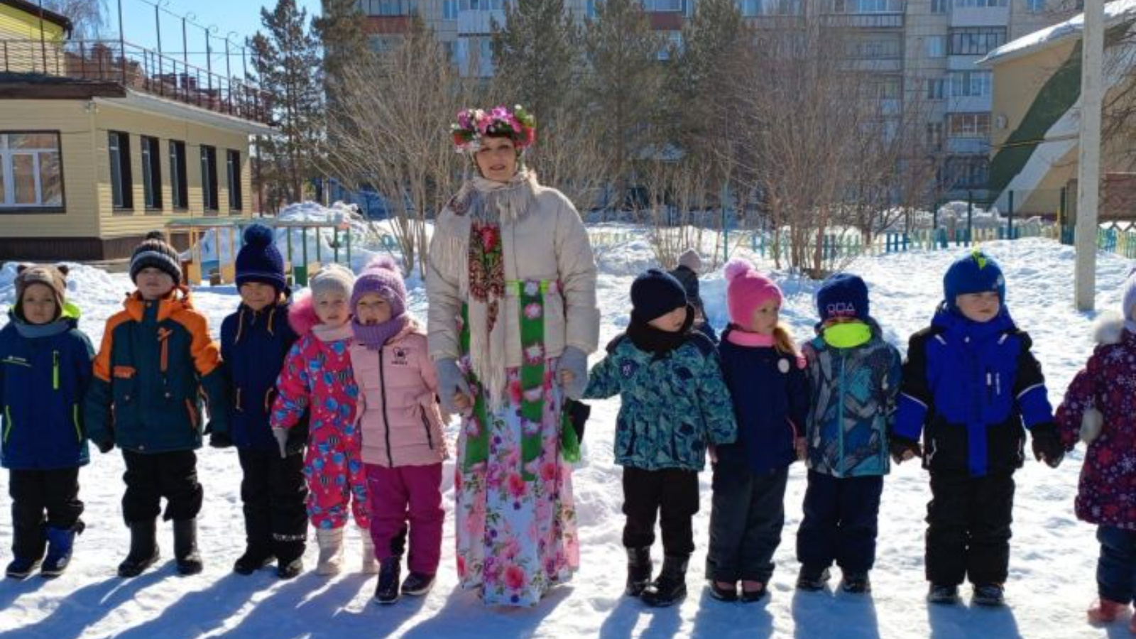 Нәүрүз-яз һәм Кыш бабай балалар бакчасында тәрбияләнүчеләргә кунакка килделәр. Балалар алар белән бергә яз турында җырлар җырладылар, биеделәр, халык уеннарында катнаштылар.