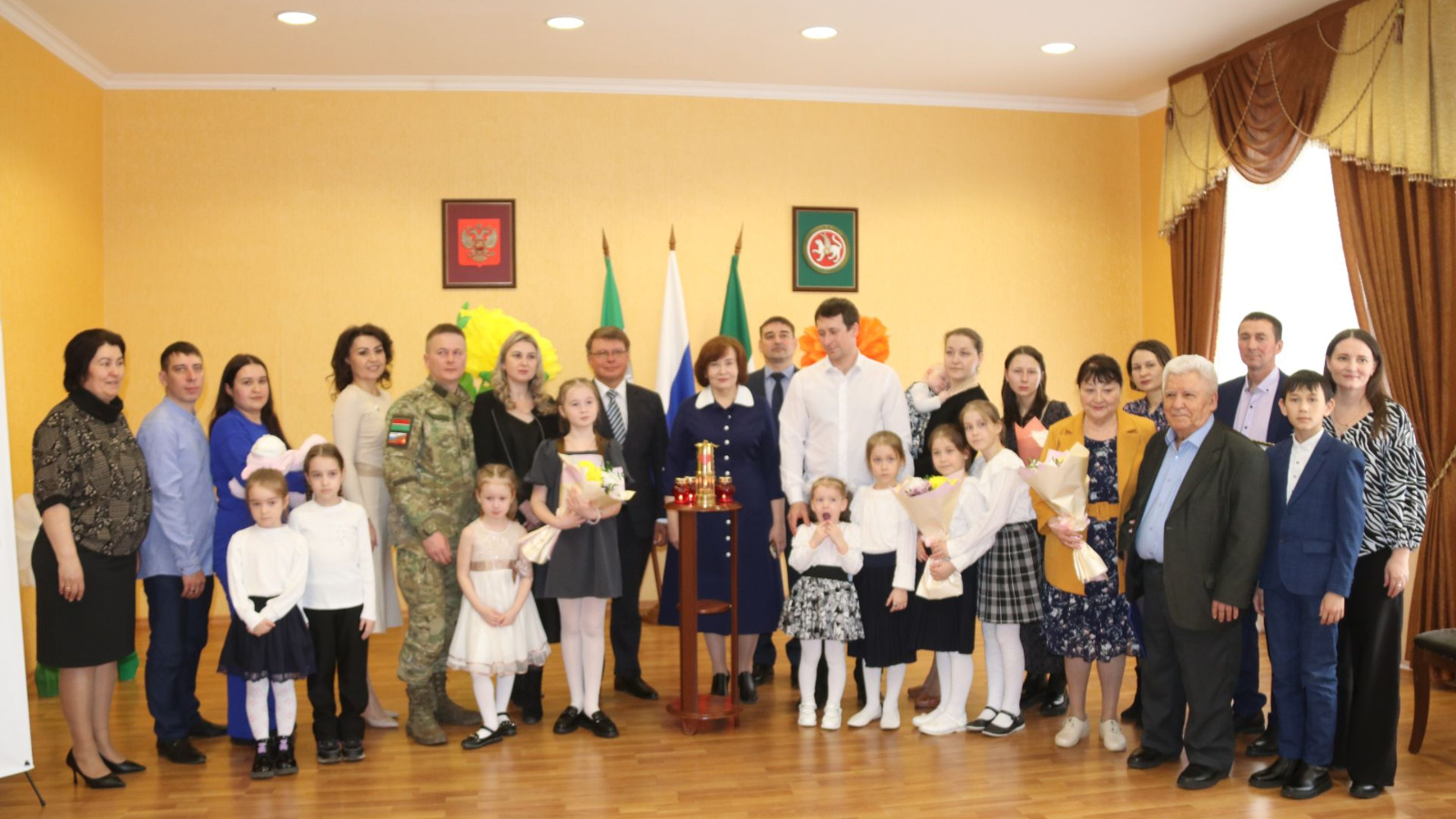 ЗАГС бүлегенең тантаналар залында Азнакай районының күп балалы гаиләсенә «Россия йөрәге» гаилә уты капсуласын тапшыру тантанасы булды.