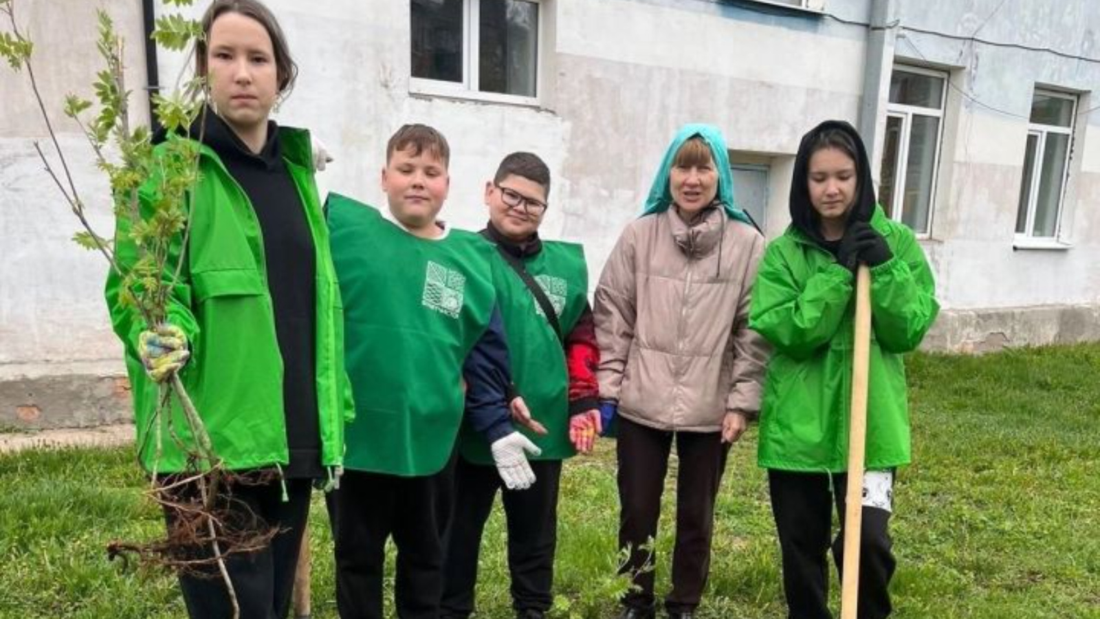 Укучылар, география укытучысы Луиза Гыйльфанова җитәкчелегендә, миләшләр утырттылар!
