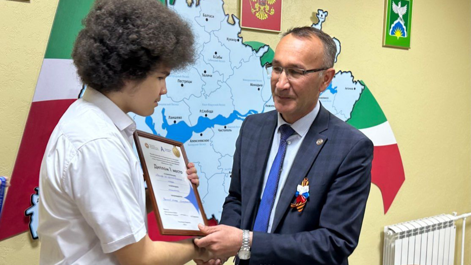 Ютазы районы башлыгы Аяз Шәфигуллин район тормышы мәсьәләләре буенча атналык киңәшмә вакытында «Урыссу интернат мәктәбенең» 9 сыйныф укучысы Әлмир Вәлиевне һөнәри осталык буенча «Абилимпикс 2024» милли чемпионатының республика этабында җиңүе белән котлады.
