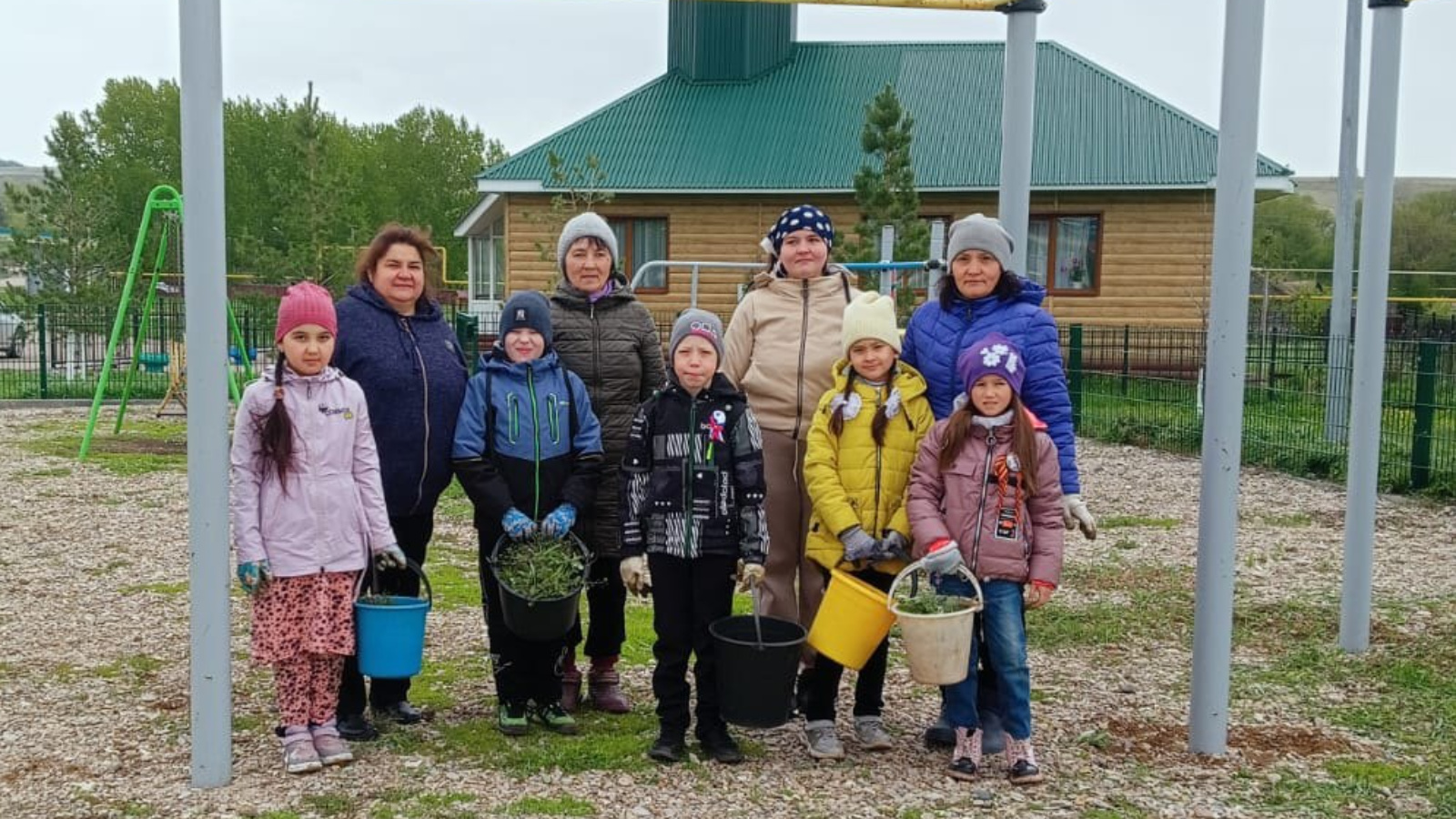 Экологик икеайлык кысаларында Акбаш башлангыч мәктәбенең 3 сыйныф укучылары балалар спорт мәйданчыгы территориясендә өмә үткәрделәр