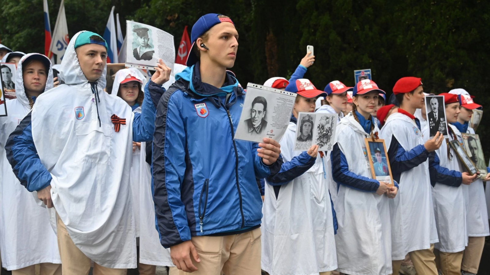 Урыссуның 3 нче санлы урта гомуми белем бирү мәктәбенең укучысы Рада Данилова, бабасының фотосурәте белән Үлемсез Полк йөрешендә катнаша.