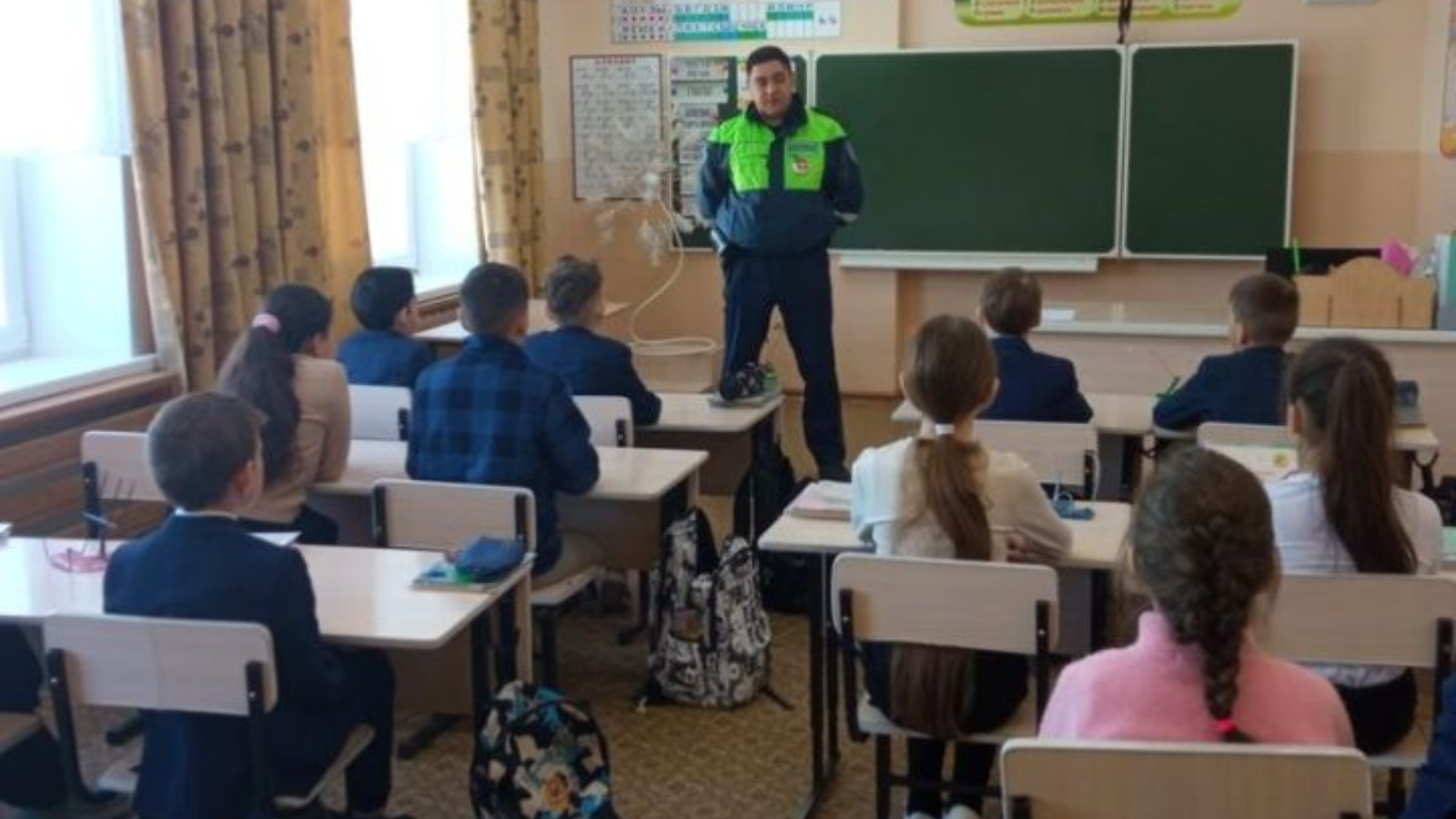 ЮХИДИ инспекторы Рөстәм Жанназаров Әбсәләм төп гомуми белем бирү мәктәбендә укучылар белән юл хәрәкәте кагыйдәләре турында профилактик әңгәмә үткәрде.