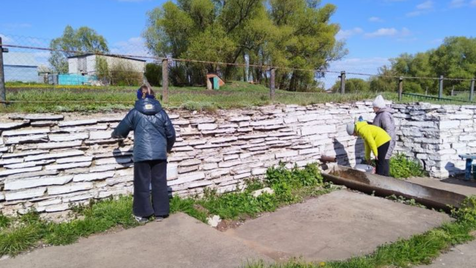 Өлкәннәр балалар белән бергә территорияне чүптән арындырдылар һәм «Яшьлек» чишмәсенең таш коймасын агарттылар.
