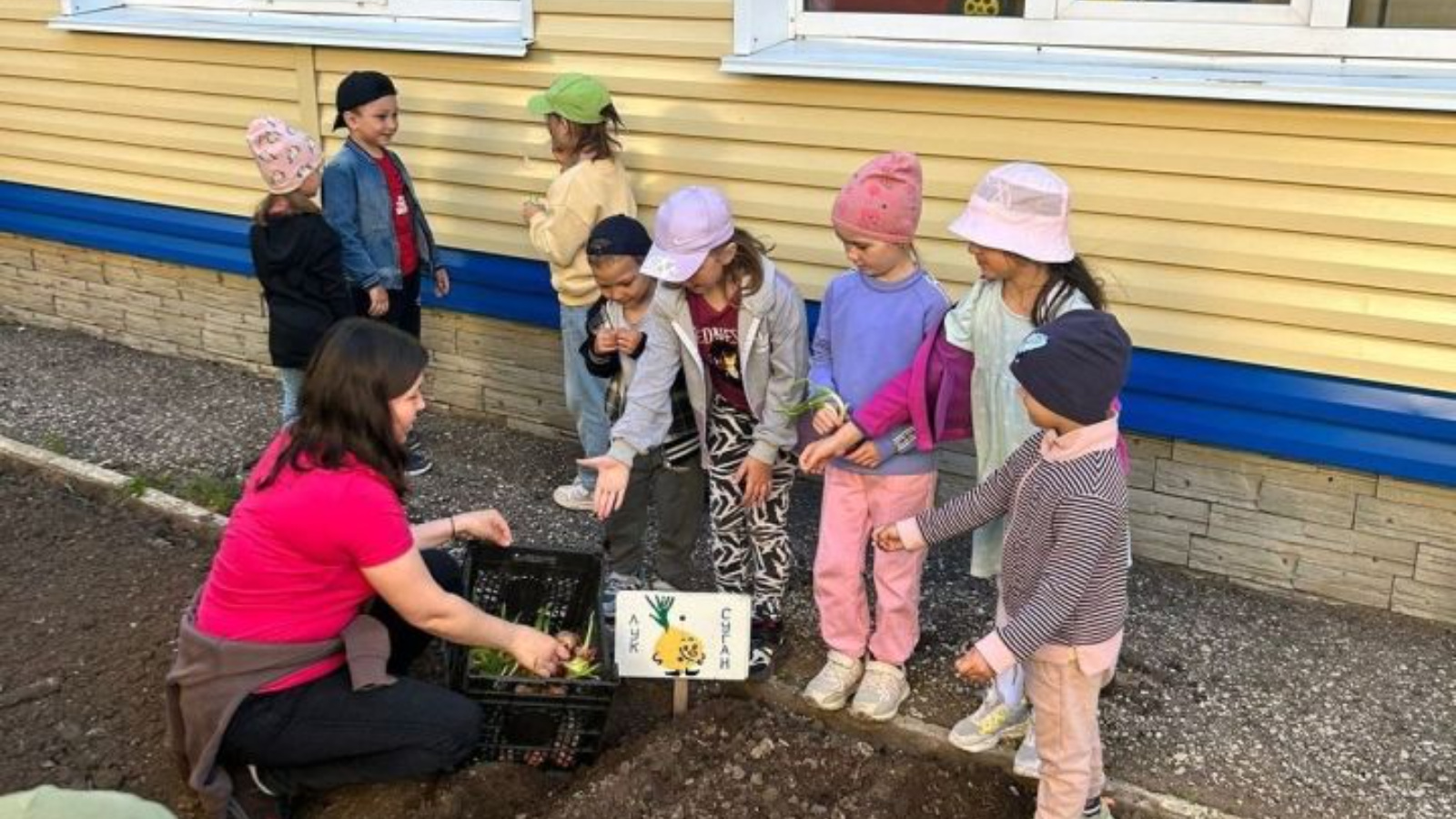 Урыссуның 6 нчы санлы балалар бакчасында балалар тәрбияче белән бергә укроп, кишер, чөгендер, суган утырттылар.