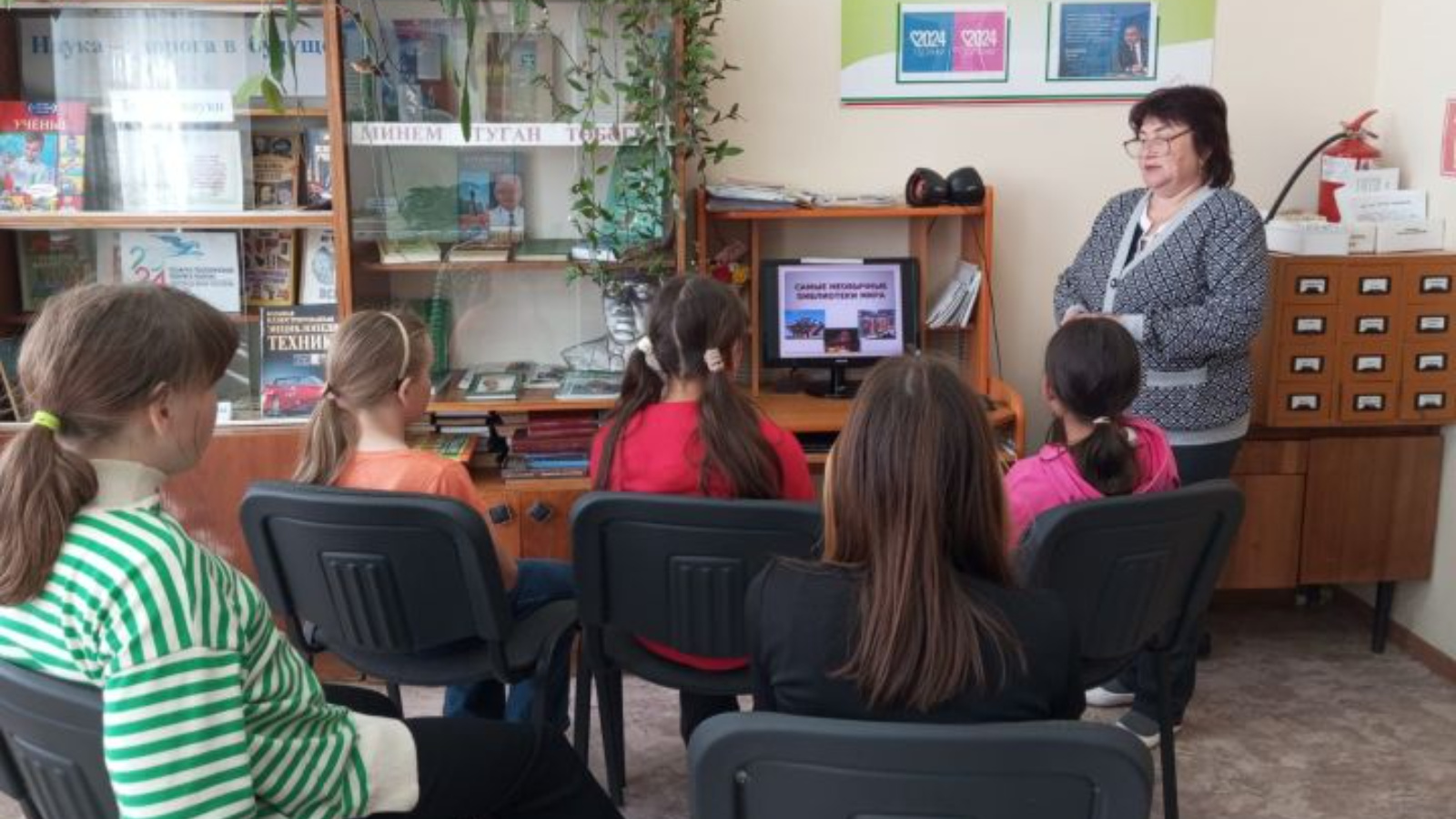 Авыл китапханәсендә Гомумроссия китапханәләр көненә багышланган «Дөньяның иң кызыклы китапханәләре» дигән мәгълүмати-танып белү сәгате узды.