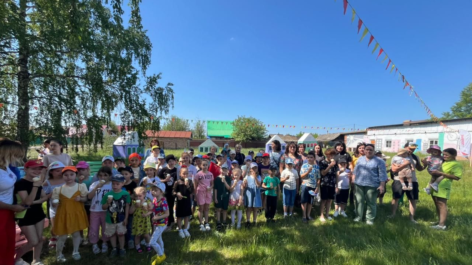 Бәйрәмгә район җитәкчелеге вәкилләре килде. Алар балаларга туңдырма тараттылар, бу эссе җәй көнендә бик уңышлы булды.