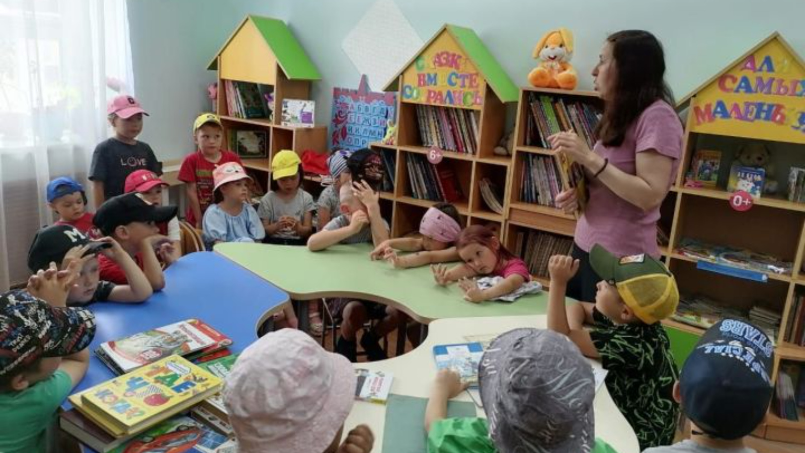 Мәктәпкәчә яшьтәге балалар үзләре өчен бик күп яңа һәм кызыклы нәрсәләр ачтылар: аларны китапханәнең төрле бүлекләрендәге китап киштәләрендәге төрле төсле китаплар һәм журналлар гаҗәпләндерде.