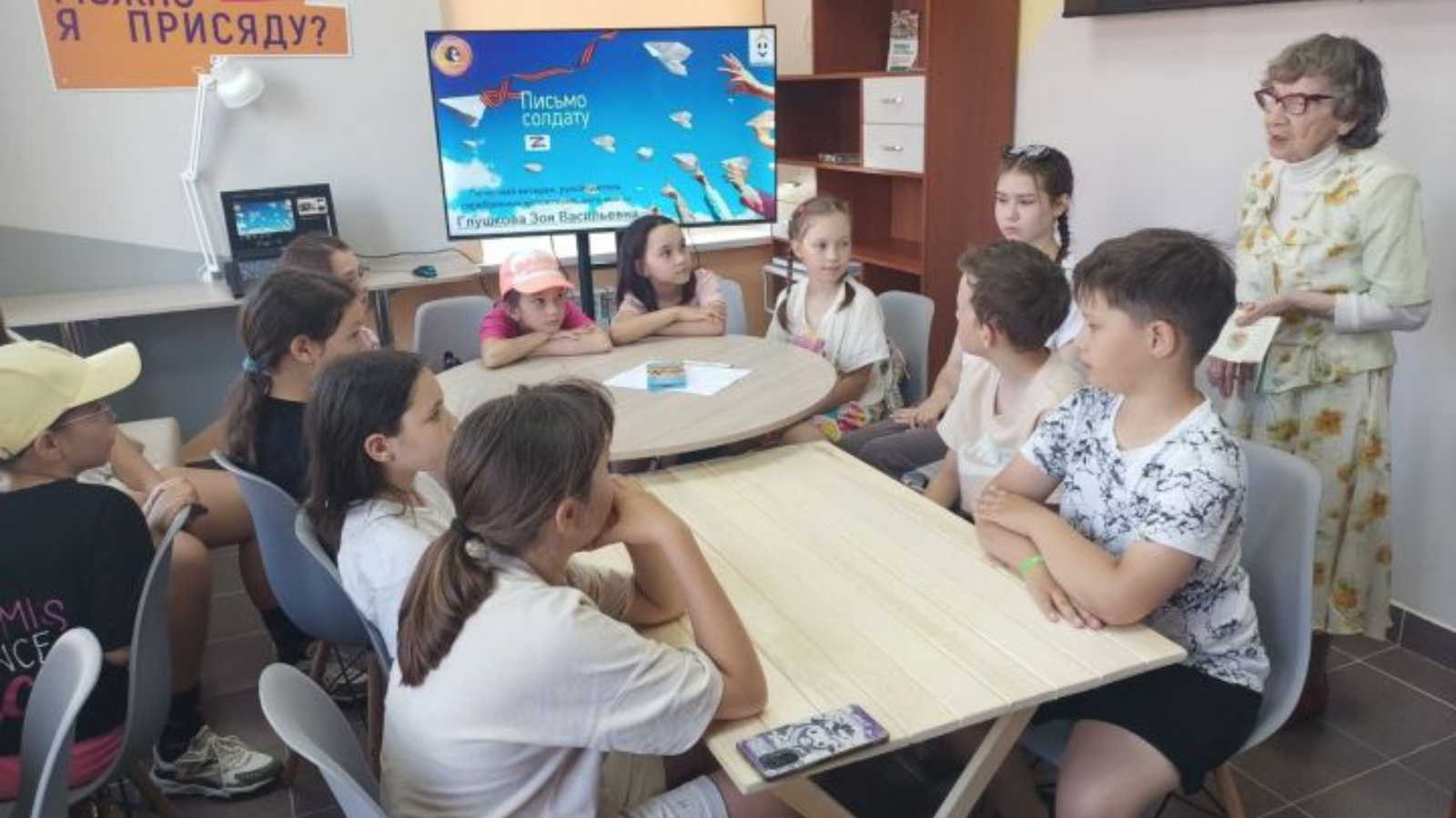 Балалар махсус хәрби операциядә катнашкан солдатларга мактаулы ветеран, Көмеш волонтерлар җитәкчесе Зоя Глушкова белән берлектә хатлар яздылар.