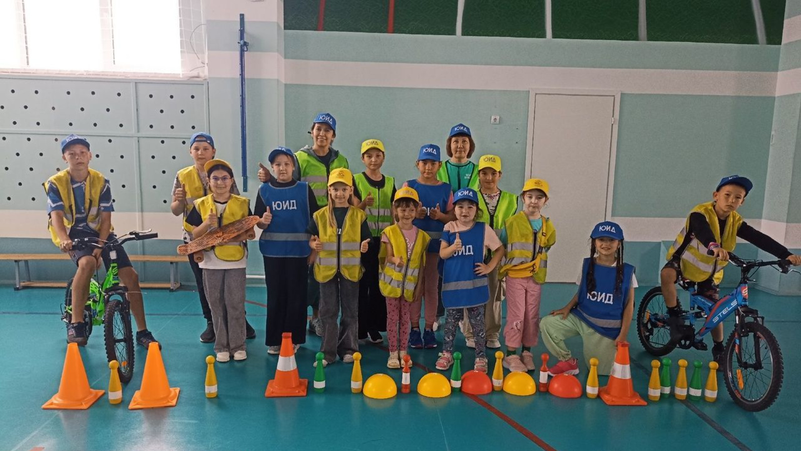 Балалар ике командага бүленеп эстафеталарда ярыштылар. Алар барлык бурычларны бик яхшы үтәделәр һәм команда уенын велосипедта киртәләр полосасы белән тәмамладылар.