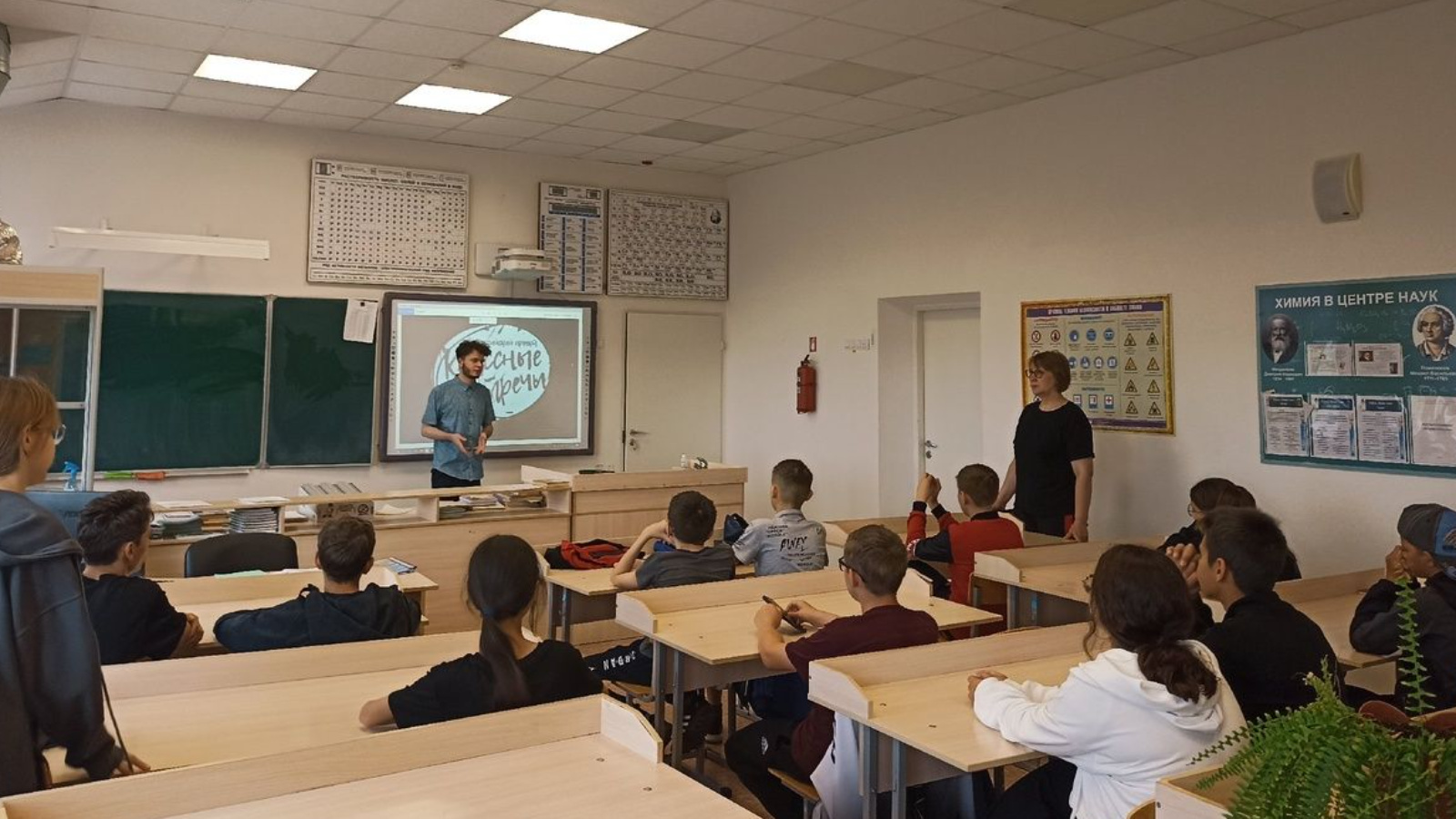 Гимназиядә дәүләт медицина университеты студенты Артем Малыгин белән хезмәт һәм ял лагеренда ял итүчеләрнең «сыйныф очрашуы» узды. Ул университетка керү тәҗрибәсе, анда уку үзенчәлекләре турында сөйләде, уку дисциплиналары, шулай ук медицина вузының чын студенты булу турында кайбер хикәяләре белән уртаклашты.