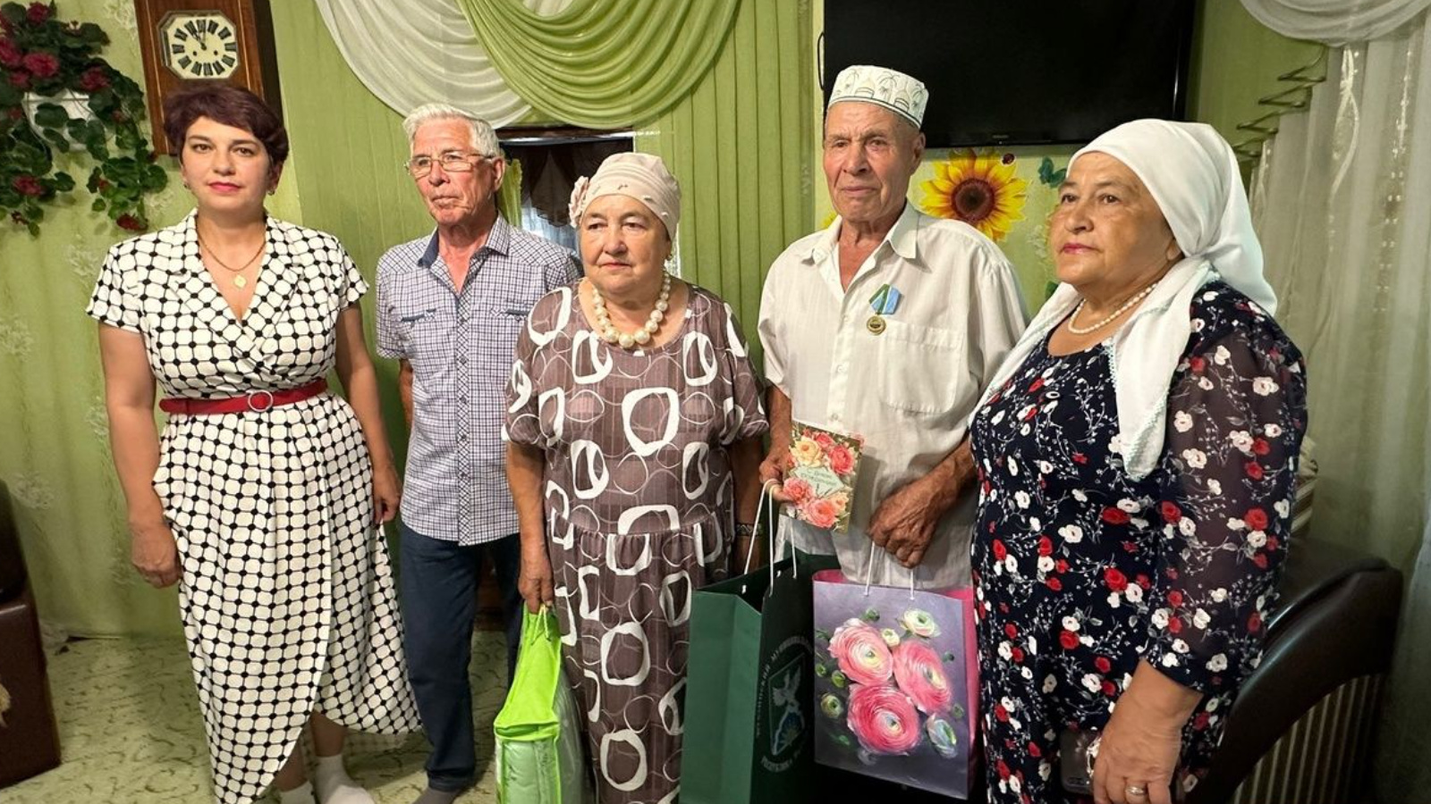 Урыссу АТП ветераны Сәгъдәт Мөхәммәтҗанов котлаулар кабул итә. Ютазы районы башлыгы исеменнән ветеранны җирлекләр белән эшләү бүлеге башлыгы Зөлфия Әминова, Урыссу авыл җирлеге башлыгы Фәния Әминова, элекке коллегасы Әнис Шәрифуллин, Кәкле-Күл авылы ветераннар советы рәисе Зөһрә Хәертдинова һәм якыннары котларга.