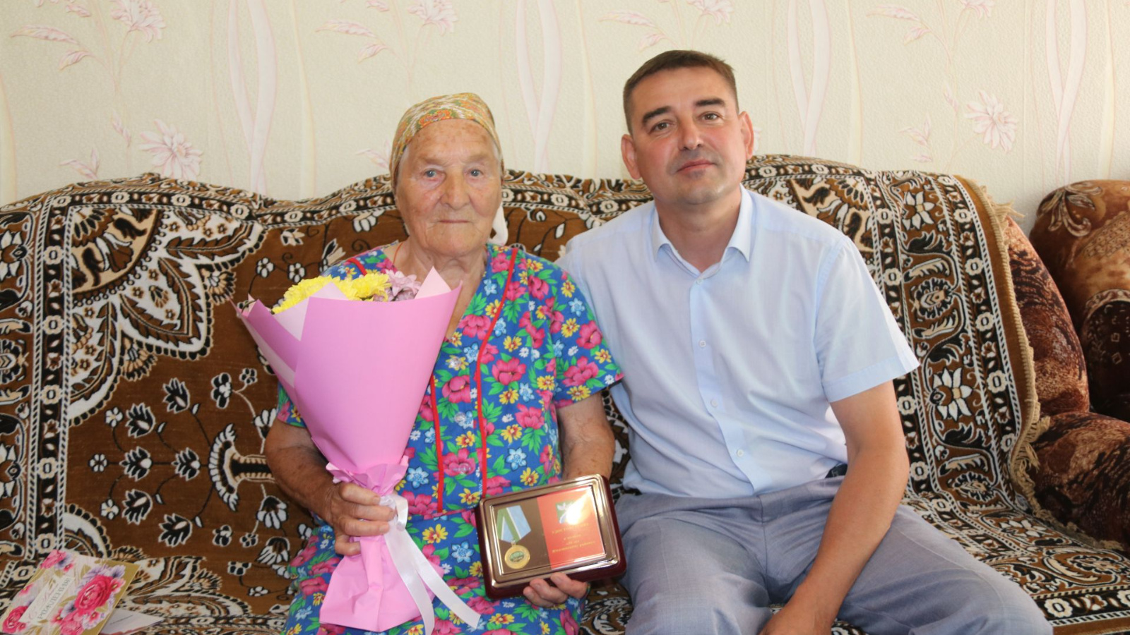 Район җитәкчелеге исеменнән юбилярны район башкарма комитеты җитәкчесенең социаль мәсьәләләр буенча урынбасары Сергей Рузанов котлады. Ул Нина Николаевнага үзенең яхшы теләкләрен җиткерде, бүләк һәм чәчәк бәйләме тапшырды.