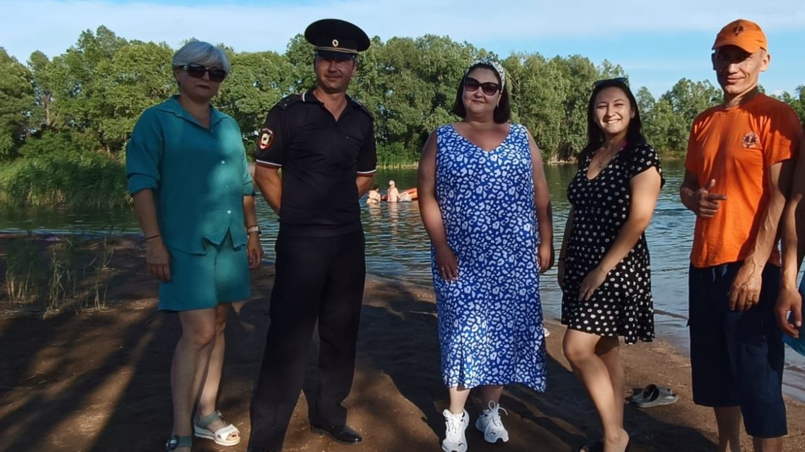 ОУР оператив вәкаләтлесе Алексей Карасев, «Форпост» үзәге директоры Марина Бурыкина составындагы Комиссия коткаручылар һәм ирекле дружина вәкиле Диана Катеева белән берлектә сулык ярында профилактик рейд үткәрде.