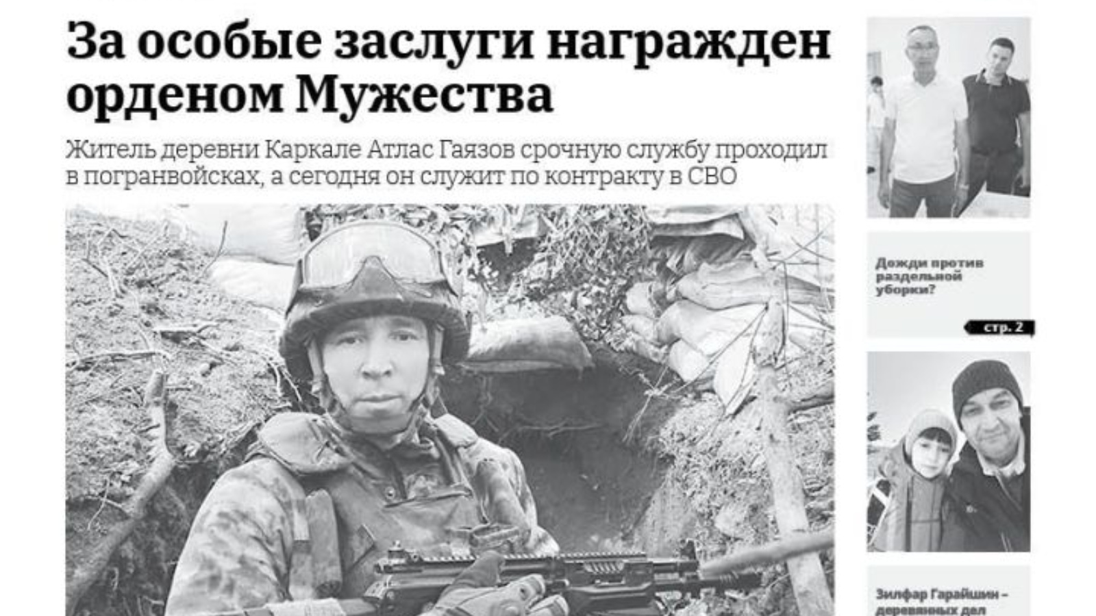 Махсус хәрби операциядә хезмәт итүче якташыбыз Атлас Гаязов район газетасы турында үз фикерен җиткерде.