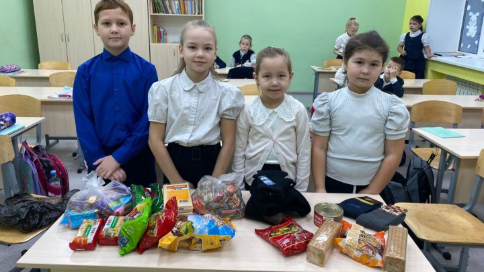 Урыссу 1 мәктәбенең "Битараф булмаган йөрәкләр" волонтерлар отряды фронтка Яңа ел бүләкләре җыюда катнашты.
