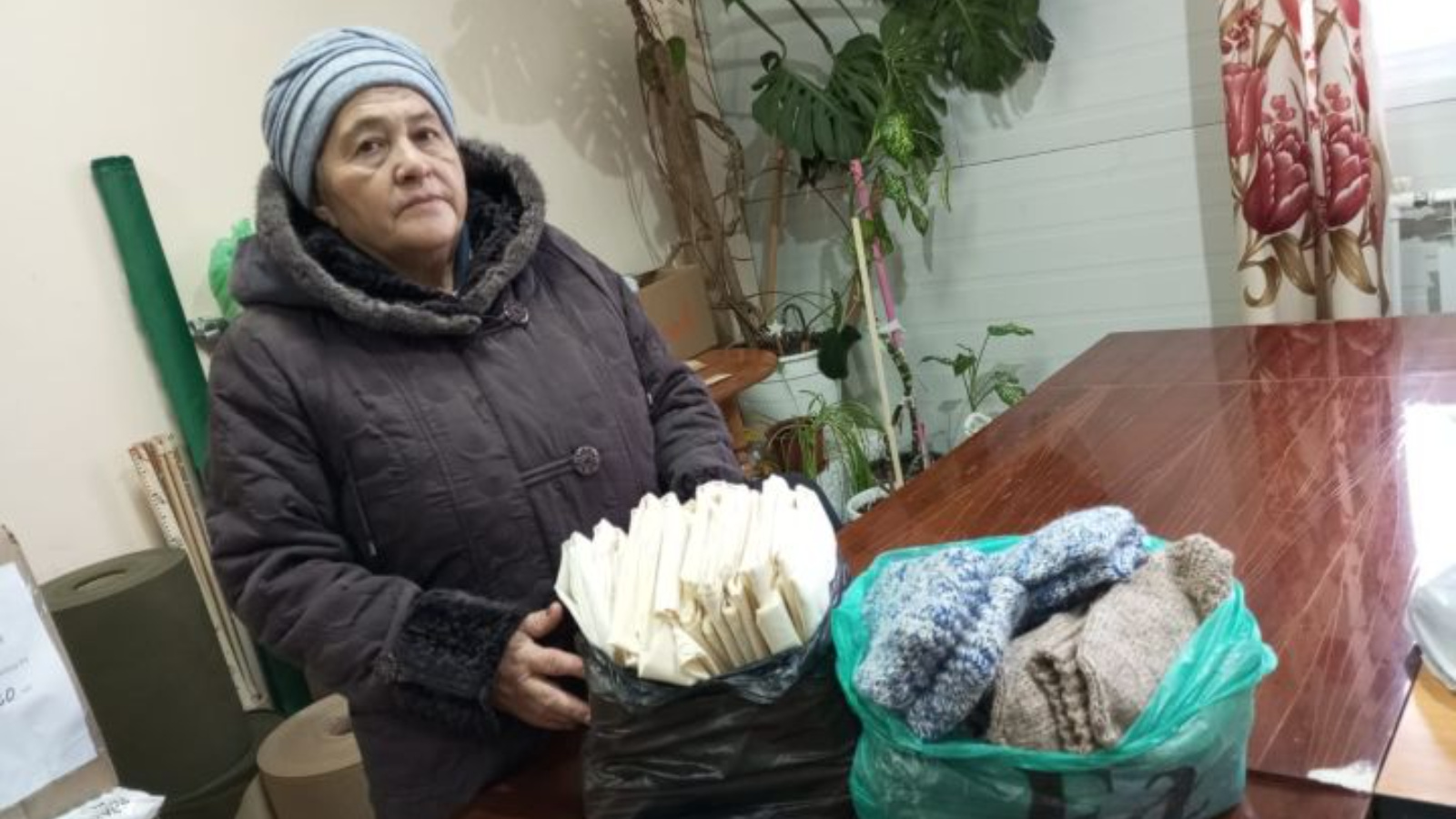 Авыл халкы оекбаш бәйли, һәр элмәген Ватанны саклаучылар турында уйланып иҗат итә.