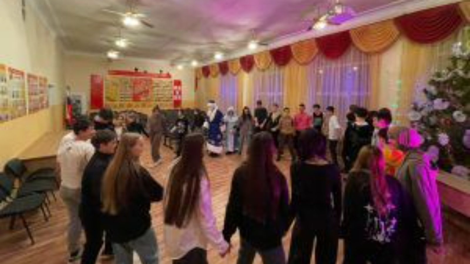 Мәктәп укучылары, яшьләрнең популяр җырларын җырлап һәм үз талантларын дәртле биюләрдә гәүдәләндереп, матур конкурсларда катнаштылар. Тылсым һәм бәхет атмосферасында алар чыршы тирәли әйлән-бәйлән уйнадылар. Һавада көлү һәм шатлык, ә балаларның йөзләрендә ихлас бәхет балкый иде.