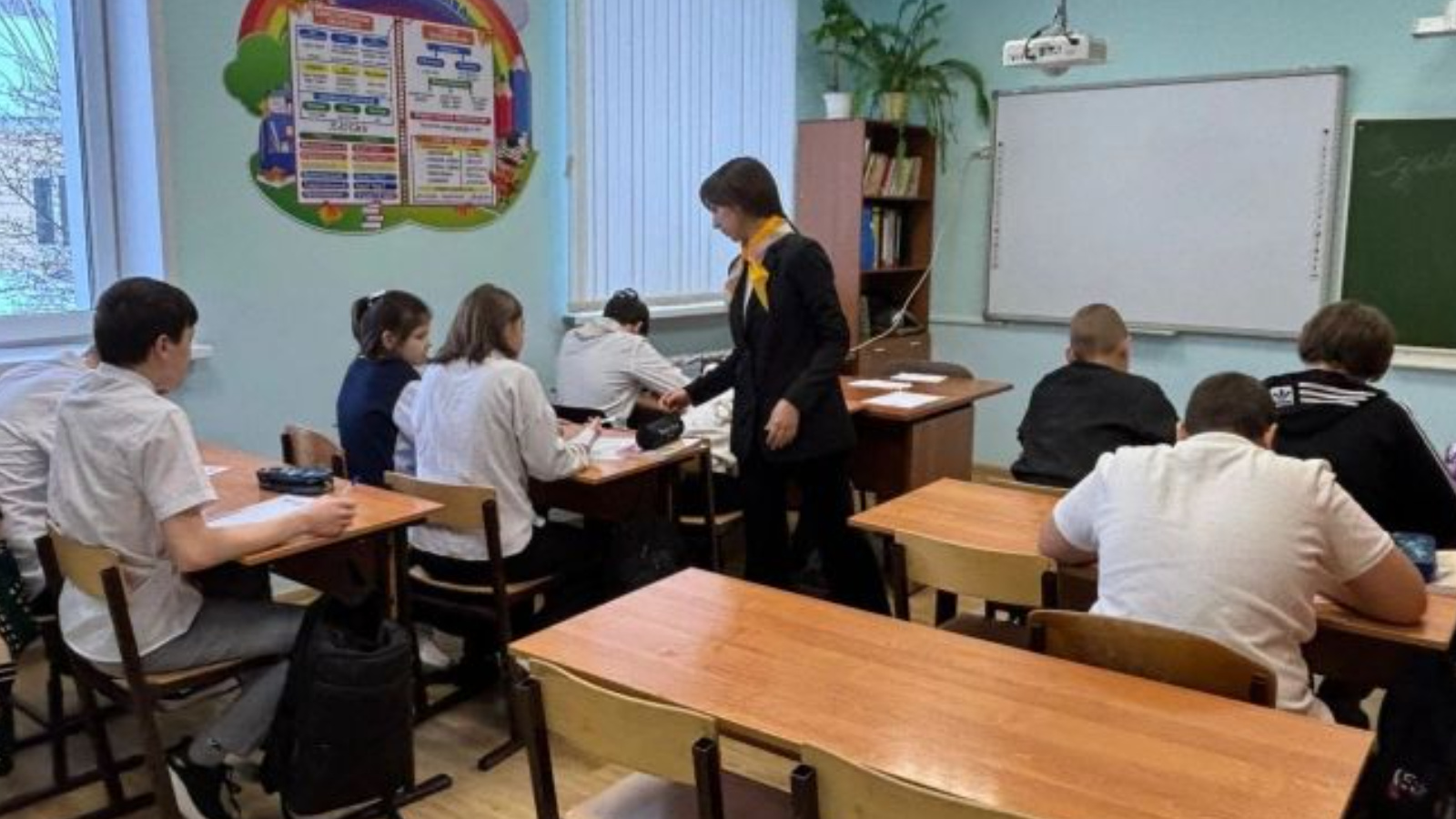 Урыссу интернат-мәктәбенең тәрбия эшләре буенча директор киңәшчесе мәктәп активистлары белән берлектә махсус хәрби операциядә катнашучы солдатларга юлламалар җибәрүдә катнашты, аларны ярдәм сүзләре белән тутырды.
