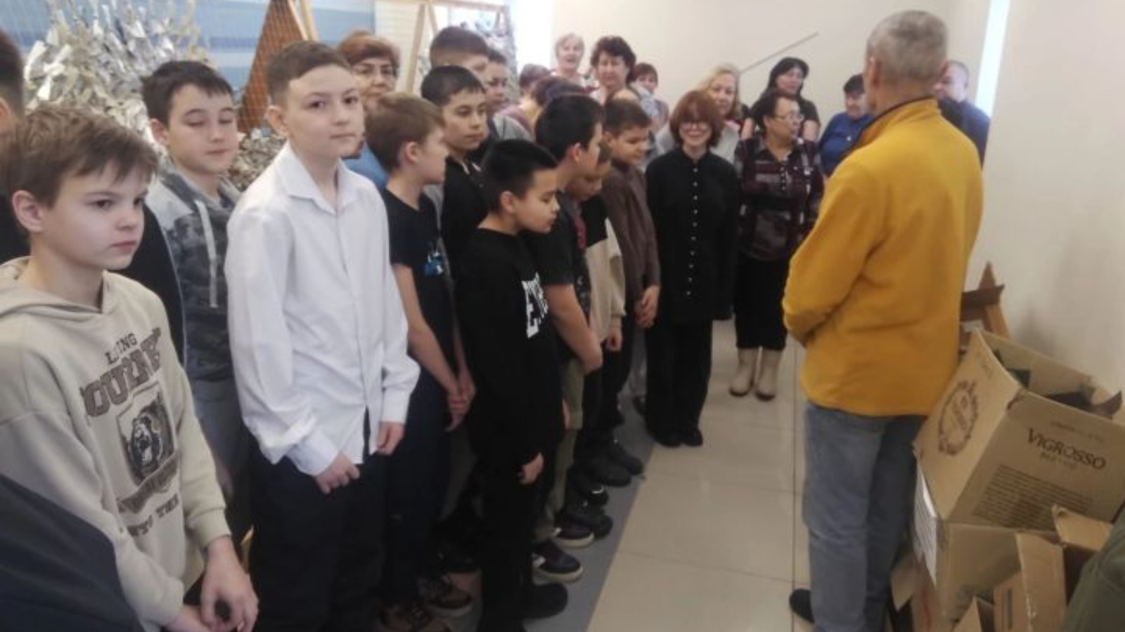 Әңгәмәдән соң балалар Урыссуның 2нче мәктәбе укучыларының солдатларга язган гуманитар ярдәмен һәм хатларын тапшырдылар.