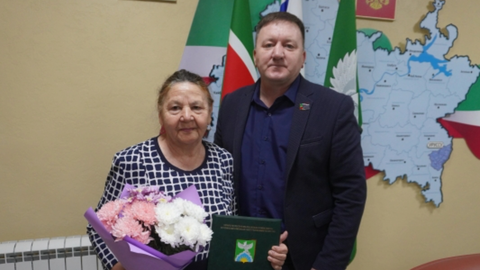 Шулай ук актив тормыш позициясе, районда ветераннар хәрәкәтен үстерүгә керткән зур өлеше, махсус хәрби операциядә катнашучы сугышчыларга риясыз ярдәме өчен һәм юбилей уңаеннан Ютазы муниципаль районы башлыгының Мактау грамотасы белән Подгорный бистәсе ветераннар (пенсионерлар) советының беренчел оешмасы рәисе Әхмәтвәлиева Әлфирә Гайфулла кызы бүләкләнде.