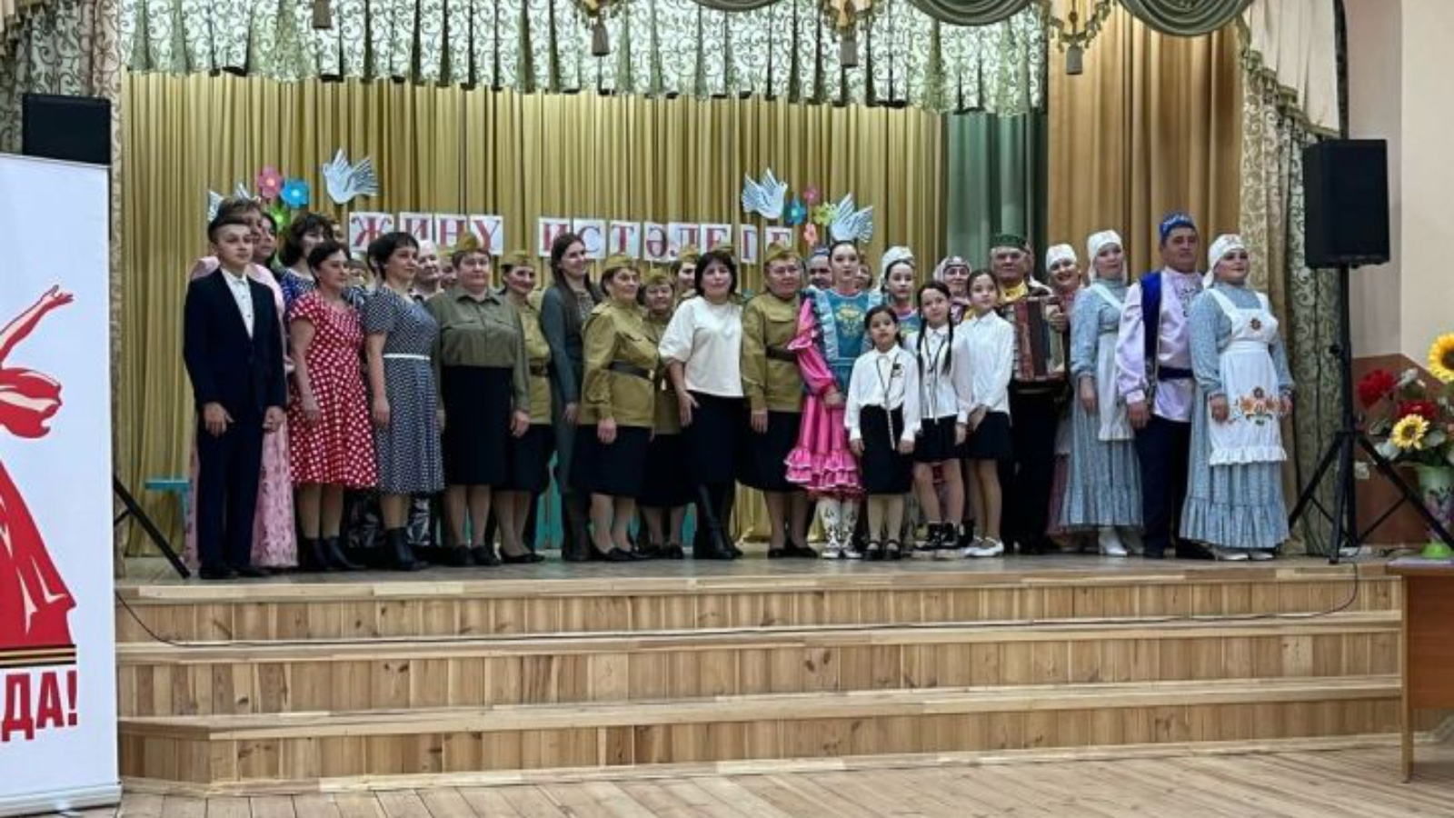 Коллектив Бөек Ватан сугышы тарихының героик битләрен чагылдырган якты һәм күңелне нечкәртә торган программа тәкъдим итте.