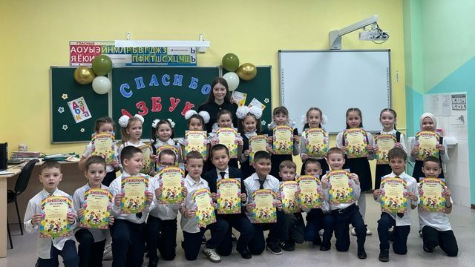 Һәр укучыга Әлифбаны уңышлы үзләштерүен раслаучы истәлекле диплом тапшыру аеруча дулкынландыргыч вакыйга булды. Укытучылар һәм ата-аналар үзләренең белемнәрен һәм осталыкларын шундый энтузиазм белән күрсәткән балаларын горурланып күзәттеләр.
