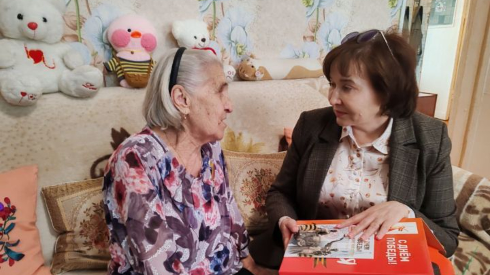 Урыссу бистәсендә яшәүче тыл хезмәтчәне Татьяна Санниковага Татарстан Рәисе котлавын һәм Бөек Җиңүнең 80 еллыгы уңаеннан бүләк җиткерделәр.