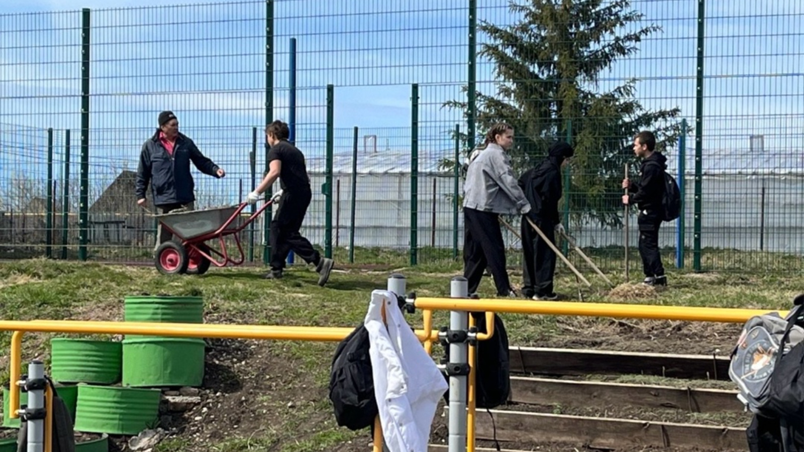 Мәктәп яны территориясен җыештыру - чүп-чар, көздән коелган яфраклар җыештырылды, юллар себерелде, чәчәк түтәлләре тәртипкә китерелде.
