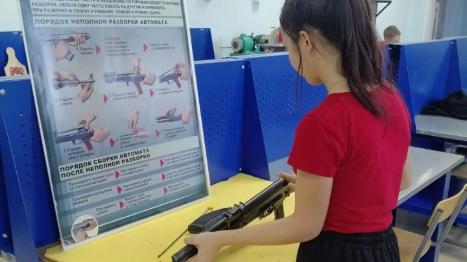 Модуль кысаларында укучылар Калашников автоматының һәм кул гранаталарының төзелешен өйрәнделәр. Остазлар җитәкчелегендә балалар коралны сүтеп-җыярга, магазинны патроннар белән җиһазларга өйрәнделәр, шулай ук үзләрен өйрәнү гранаталары ыргытуда сынап карадылар.